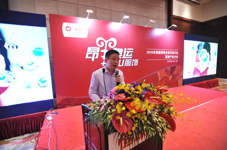2016年5月31日,以“昂羊奥运、+you服饰”为主题的2016年恒源祥联合体代表大会服饰产业分会在苏州金鸡湖成功举行,恒源祥集团总经理陈忠伟、集团品牌发展中心总监顾云尧、集团财务中心副总监王丹青、集团财务中心副总监俞菲莉、集团品牌发展中心副总监沈岚、集团羊羊印务董事长陆国平、集团财务中心总监助理张司明、恒源祥集团服饰公司总经理黄珏仁、集团公司相关部门代表、上海伯俊软件公司代表、上海灵肯科技公司代表、上海纺织协会产业创新服务中心代表以及来自全国各地的工厂代表、经销商代表共计200余位出席了本次大会。