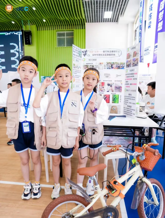 上海北郊学校 10 岁女孩袁韩梓用废旧材料制作的 “智能浇花器”,从社区绿化养护的实际难题出发,既践行环保理念又提供实用解决方案;上海世外小学 “飞天小潘达” 小队的三位二年级学生,则聚焦日常骑行安全隐患,设计的 “骑行安全交互系统” 充满对身边人安全的细腻关怀;来自上海美国学校的两位女孩,更将目光投向无家可归者群体,关注到这一群体的食物需求 —— 希望通过这个小创意,既能让受助者体面地获取食物、摆脱领取时的羞耻感,又能让食物捐赠者在避免浪费的同时传递爱心。这份对弱势群体的细腻关怀,让创新真正成为可触达的温暖力量。这些作品既精准捕捉生活痛点,更展现出从发现问题到解决问题的完整系统思维。