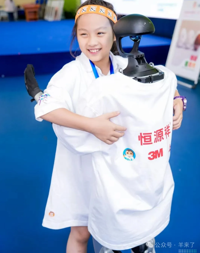 88 岁的沈学础院士与上海民办平和中学吴金轩,上海外国语大学浦东外国语学校陈圣朵,上海北郊学校袁韩梓和宇树科技机器人等共同点亮水晶球的瞬间,成为赛事启动仪式的高光时刻。孩子们向院士献上恒源祥非遗技艺制作的绒线玫瑰,象征科技与人文的代际传承;宇树科技的机器人作为特殊嘉宾参与仪式,科技感与童趣在此碰撞。