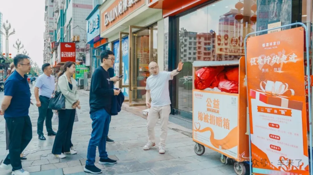 此次走访的首站为恒源祥家纺贵州凯里专卖店。作为贵州区域首批“恒爱驿站”示范站点之一,该站点积极履行公益职能,在服务社区方面展现出良好成效。