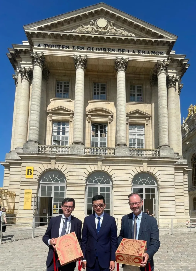 当北京冬奥健儿手捧以非物质文化遗产——海派绒线编结技艺钩编的颁奖花束时,恒源祥的东方美学已悄然叩开世界艺术圣殿之门,正是这份匠心独运的创造力,成为本次国际合作的基石。19日上午,凡尔赛宫主席克里斯托夫·勒里博与凡尔赛宫和特里亚农宫国家博物馆馆长洛朗·萨洛梅会见恒源祥集团董事长兼总经理陈忠伟。随后在凡尔赛宫两位策展人的陪同下,陈忠伟董事长参观了凡尔赛宫。