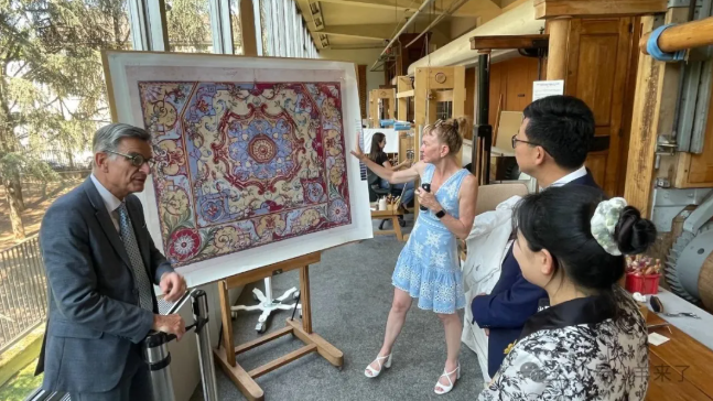 在为期三年的地毯织造进程中,中法双方还计划围绕两国的手工技艺与历史脉络,联合举办主题工坊、学术研讨及公众展览等活动,让中法传统织造智慧在碰撞中焕发新生。同时,恒源祥将以这件承载法兰西历史的地毯为灵感源泉,以非遗为纽带,开发涵盖家居艺术、时尚配饰、文化典藏等领域的系列文创产品,链接艺术设计与生活美学,让传统文物走进当代全球生活场景。