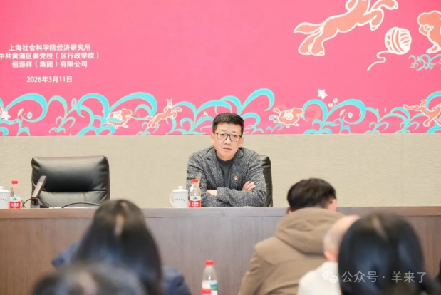 3月11日下午,由上海社会科学院经济研究所、中共黄浦区委党校(区行政学院)、恒源祥(集团)有限公司联合开展的《把握国内外宏观经济形势 推动“十五五”经济高质量发展》专题党课在黄浦区委党校开课。黄浦区委社会工作部、外滩街道、黄浦区女企业家联谊会代表与恒源祥集团全体党员等近百人同堂学习。