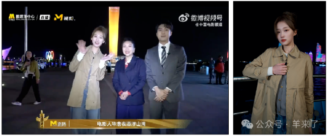 青岛籍青年演员王佳怡身穿恒源祥x海派生活美学系列服饰,参与到“华表夜游浮山湾”的直播活动中。王佳怡以当地向导的身份向电影频道主持人金泽和知名制片人、影评人藤井树推介了青岛的特色美食,一同夜游浮山湾景点。