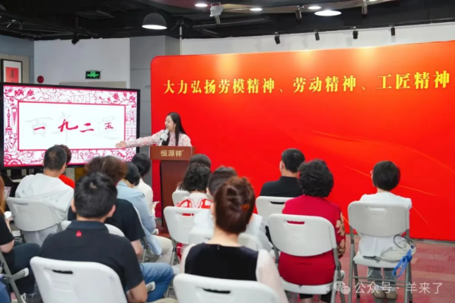 5月23日,五位来自社会各界的劳模齐聚恒源祥大厦,共同见证 “非遗薪火映初心 百年工运铸匠魂 —— 劳模工匠红色传承行动” 的启幕。2025年,中国工人运动迎来百年征程,在这个具有里程碑意义的时刻,本次活动以非遗文化为媒,以工运精神为魂,开启一场初心与匠心的盛会。上海市黄浦区总工会副主席何晓霞,黄浦区劳模工作室负责人邵小梦,上海市五一劳动奖章获得者、恒源祥集团党委书记、集团组织发展中心总经理顾红蕾,恒源祥集团终身荣誉员工、集团公共事务中心联席总经理何爱芳等领导嘉宾出席。活动由恒源祥集团工会主席、集团公共事务中心联席总经理顾云尧主持。