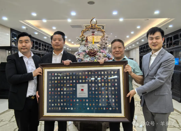 会后,双方互赠礼品并合影留念。刘董向波尚琅会长赠送了奥林匹克纪念徽章。