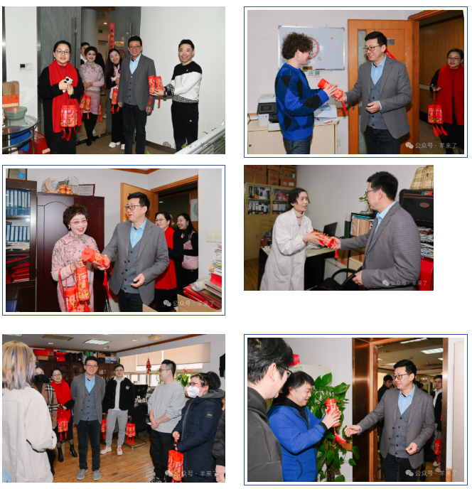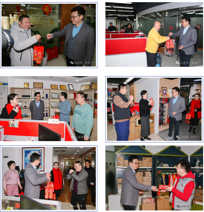 祥龙摆尾辞旧岁,灵蛇纳福迎新春。“新年好!给大家拜年啦!”派送开工红包后,陈忠伟董事长、顾红蕾书记一行来到各产业、职能中心、好小囡文化艺术中心、恒源祥绒绣原创工作室、朗戈传播等拜年,为员工们送上甜甜蜜蜜的巧克力。集团领导的亲切问候和鼓劲,让员工们满怀热忱、干劲十足。大家表示:对新的一年充满信心,将继续奋斗,勇毅担当,愿以优异的成绩迎接即将到来的品牌百年。