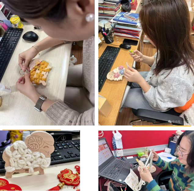 活动期间,瑞金二路街道、外滩街道宝兴居民区等也前来探店,在非遗传承人的指导下,体验“小羊织织乐”创意绒线DIY。