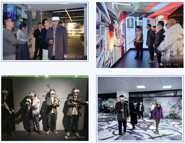 陈忠伟董事长与顾红蕾书记一行通过可穿戴设备,体验了由曼恒自主设计的多场景空间交互。