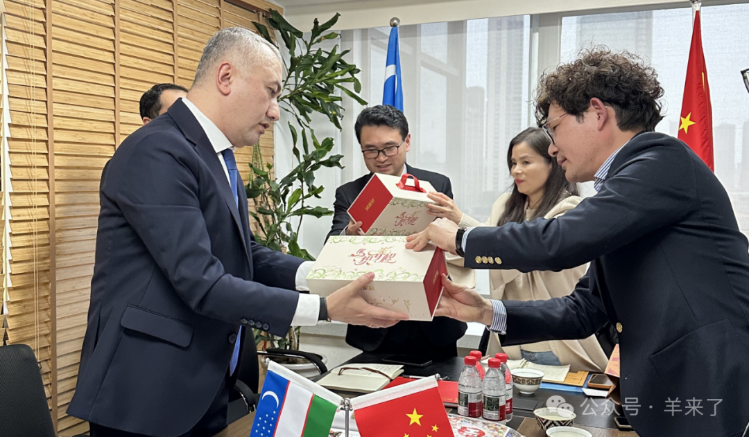 3月3日,春意渐浓之际,由集团文化宣传部总监季松滔、副总监张显北,公益慈善部副总监周之晶等组成的恒源祥代表团,拜访了乌兹别克斯坦共和国驻上海总领事馆,受到了总领事 Rustam Ismoilov 先生及副总领事 Ubaydullaev Kutbiddin 先生阁下的亲切会见。双方在友好的氛围中,举行了一场高效务实的会谈,为中乌民间友好交流注入了一缕温暖的春风。