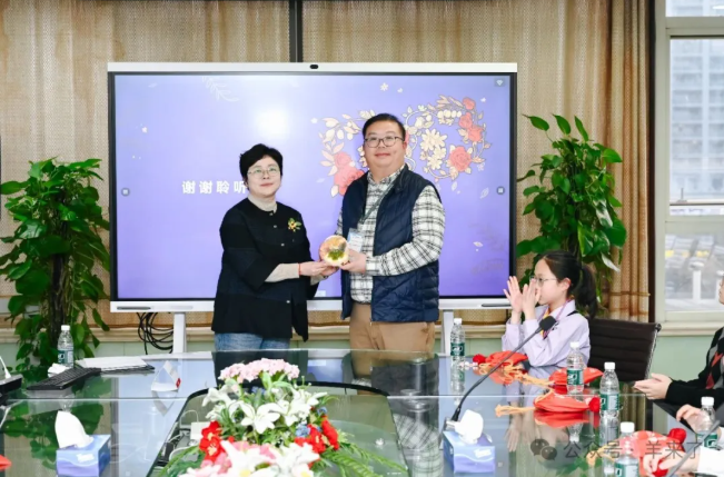 上海民办明珠中学校长张文漪校长向香港保良局颜宝铃书院陈崇真副校长赠送了由恒源祥传承的上海市级非遗“海派绒线编结”技艺制作而成的金色紫荆花“珠联荆合”。作品以香港特别行政区区花——紫荆花为造型,花朵通体金线钩织,花蕊珠光璀璨,典雅绽放;通透玻璃罩如明珠含蕴般与金色紫荆花共同熠熠生辉,这份珍贵的“上海礼物”也是恒源祥对两所姊妹学校同心绽放、如花芳华的美好祝愿,以及对“家校社企”跨界共育新生代的探索和实践。