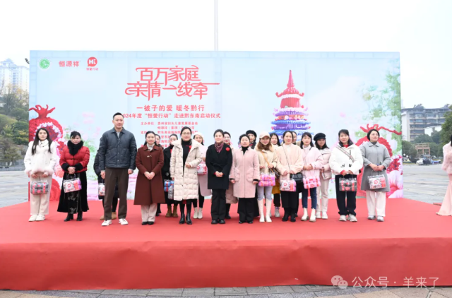12月26日上午,由恒源祥集团与贵州省妇女儿童发展基金会共同主办,黔东南苗族侗族自治州妇联、凯里市妇联、上海恒源祥家用纺织品有限公司共同承办,贵州果禾咨询有限公司公益支持的“一被子的爱 暖冬黔行——2024 年‘恒爱行动’走进黔东南”主题公益活动启动仪式在贵州省黔东南州凯里市民族博物馆广场成功举办。活动现场吸引了300多名爱心人士,并获得新华社,中新网,凯里融媒体等媒体的报道。