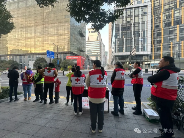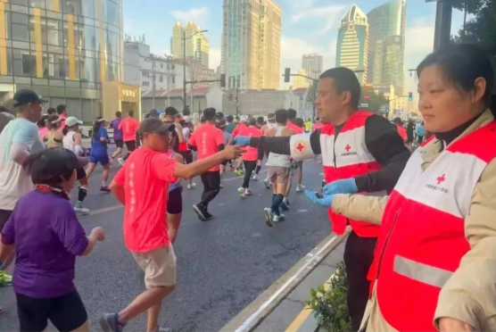 作为赛事起点及核心赛道区域,恒源祥志愿者所在的外滩街道承载着开跑时最密集的人流与最高的服务保障压力。在1号红十字点位,志愿者们积极投身站点工作,以优质的人道志愿服务,让“人道、博爱、奉献”的红十字精神在“上马”的赛场上熠熠生辉,上海黄浦融媒体对志愿者进行了报道。