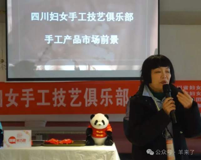 成都市幸福里女工编织创意室创始人、成都市首批社会企业“城市之窗”董事长袁阳分析了手工艺产品在国际贸易市场的前景,为俱乐部成员鼓舞信心。