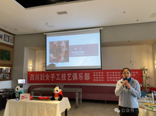 恒源祥四川分会副会长蔡惠东致辞,他表示恒源祥品牌一直以来都秉持着为社会创造价值、持续做公益的宗旨。四川妇女手工技艺俱乐部的成立,将为“银发一族”提供一个学习特长、交流互助、疗愈康养的平台,同时还能传承非遗文化、促进灵活就业。恒源祥四川分会希望与俱乐部探索更多的合作模式,从公益、产业、产品各个层面发力,建立可持续发展机制,服务“银发经济”增长。