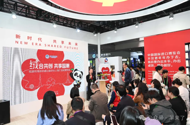 这是恒源祥第二次受邀于进博党群服务站开展文化交流活动,去年第六届进博会上与大家一起用绒线共创的作品今年也在站点展陈。