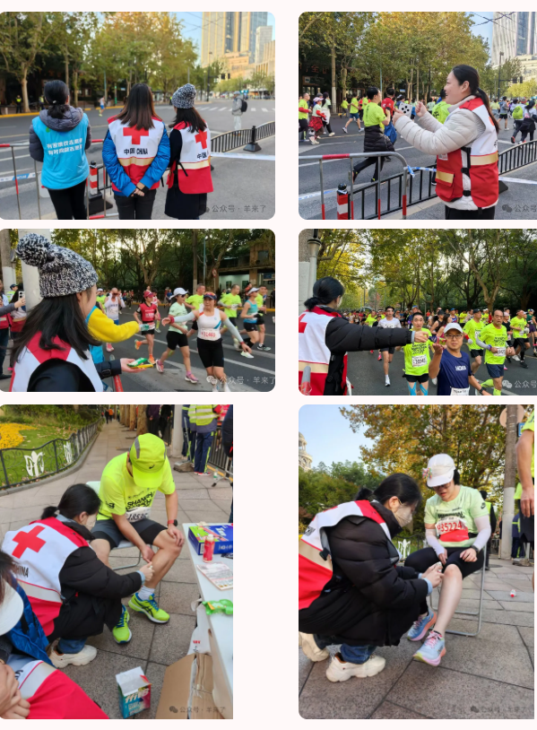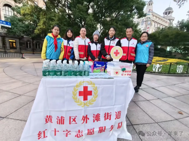 赛事在黄浦赛段设有10个红十字志愿者服务点,此次来自恒源祥集团的志愿者分配在了位于南京西路、九江路口的第一服务点,在外滩街道红十字会的指导下,参与能量补给和初级救护保障等服务工作。