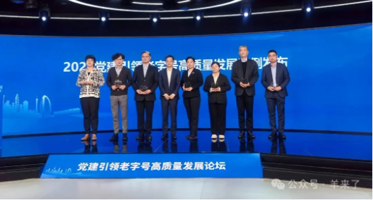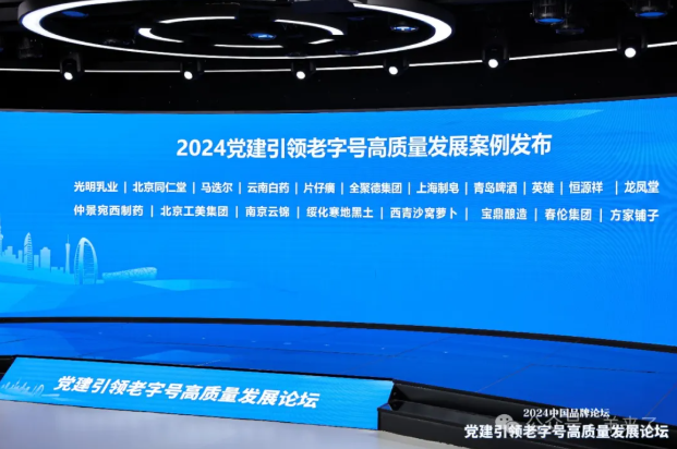 论坛最后还发布了2024党建引领老字号高质量发展案例。恒源祥、北京同仁堂、青岛啤酒等19家企业获颁发布奖牌,集团全媒体互动中心总监季松滔代表恒源祥上台领取。