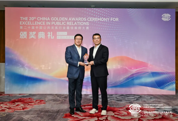 恒源祥参报了中国公关行业最佳案例大赛,中国国际公共关系协会常务副会长赵大力为恒源祥颁发企业品牌传播类金奖,集团全媒体互动中心总监郭建晨领奖。