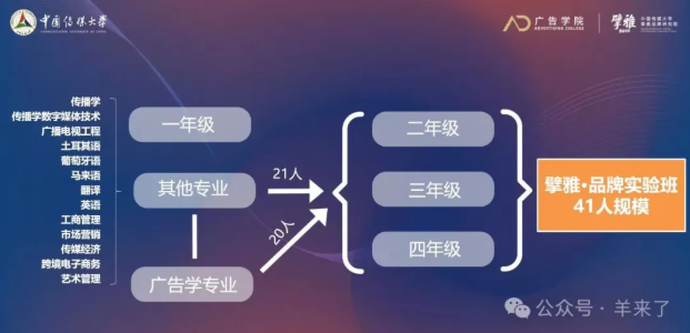 新时代,建设品牌强国和做好国际传播成为国家战略,“擘雅·品牌实验班”应运而生。实验班聚焦培养人工智能时代的高水平品牌专业人才,服务中国品牌建设、品牌出海以及国际传播,进一步推动用品牌讲好中国故事、传播好中国声音。实验班由广告学院和擘雅品牌研究院联合打造,是中国传媒大学本科教学改革创新的试验田。未来实验班将深入贯彻落实习近平总书记回信精神,在国家战略和学校战略中找准定位,充分发挥学校和学院优势,从品牌国际传播视角聚焦新闻舆论工作需要,突出实验班的办学特色,深化改革创新,不断提高品牌教学科研水平,努力培养出更多高素质的品牌专业人才和国际传播人才,从品牌方面为党的宣传思想文化事业发展做出新贡献。