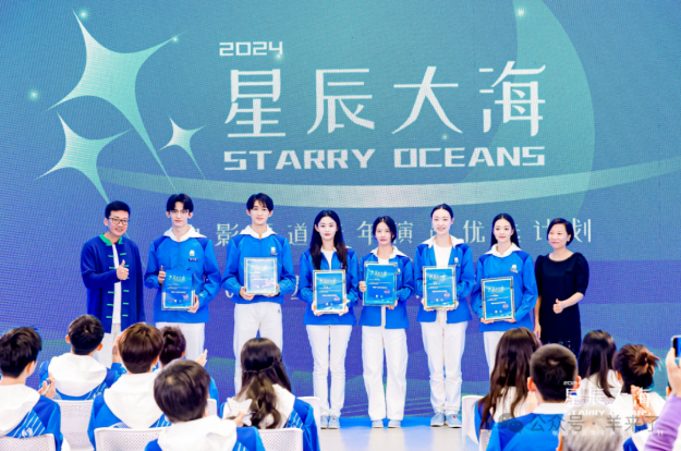 仪式最后,陈董为荣梓衫、赵晴、刘些宁、任璐遥、常华森、管乐等6名青年演员颁发优秀学员荣誉证书。