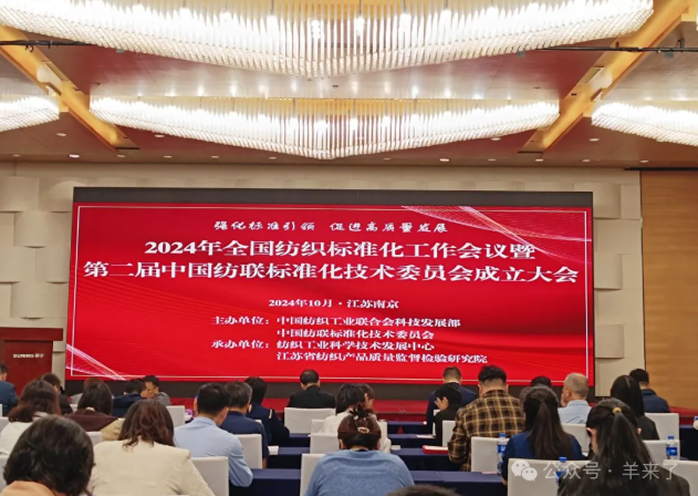 10月16日上午,由中国纺联科技发展部和中国纺联标准化技术委员会主办,纺织工业科学技术发展中心、江苏省纺织产品质量监督检验研究院承办的“2024年全国纺织标准化工作会议暨第二届中国纺联标准化技术委员会成立大会”在江苏南京召开。