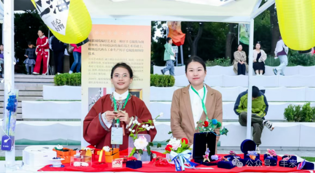恒源祥作为2024年中法文化旅游年八大重点精品人文交流项目之一的中国工艺创新博览会的特邀事业伙伴,以中法两国国花牡丹和鸢尾和博览会LOGO为主题,以国家级非遗上海绒绣为载体,创作开发了一系列的伴手礼,本次也来到了玄武湖畔进行展示。