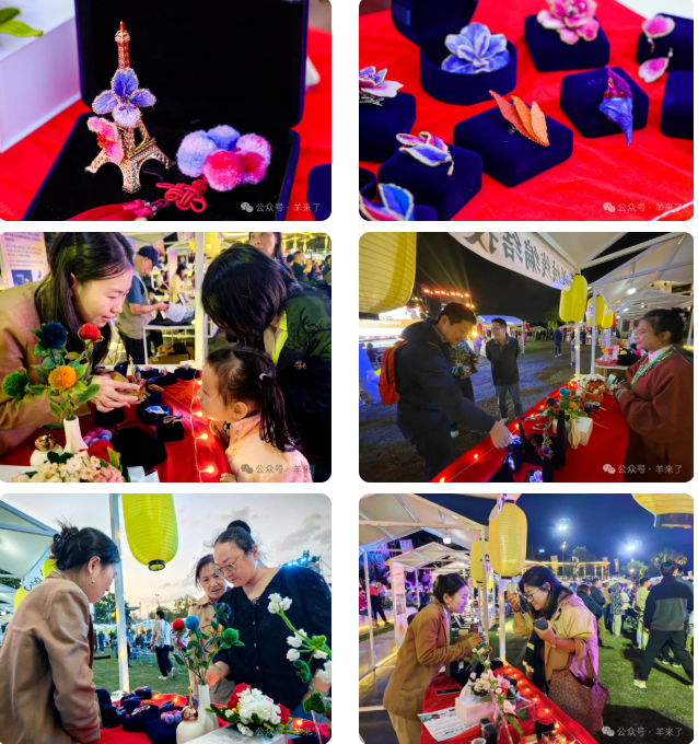 上海市市级非遗海派绒线编结技艺主要展示了2022年北京冬奥会颁奖花束、以中国国花牡丹和塞尔维亚国花铃兰为元素所钩织的作品“中塞之花”、为上海市黄浦妇联专门定制的“巾帼花”等别致的编结作品,以及可购买的小“炀头”和龙年限定小龙头,这些造型精巧的花束,萌态十足的小动物成为活动现场一道别样的风景,牢牢地吸引了游客们的目光,他们驻足观赏,一时间展位热闹不已。