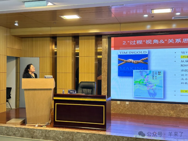 四川美术学院跨界美育研究所负责人孙海燕教授作了《“八十年代”的景观与本真:对一幢民国居民楼的设计人类学研究》主题分享。她首先以长沙超级文和友为例,探讨了当今消费市场将上世纪八十年代的日常生活作为景观加以重构的现象。她分享了对一幢有75年历史的老式居民楼的民族志研究,深入分析了其中的日常用品与空间设计,揭示了住户在日常生活中的主体创造力、个人自我呈现以及在时间流逝中的绵延张力。这一研究生动展现了设计人类学如何通过物质文化研究反映生活的本真与社会变迁。