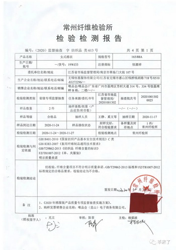 经深入调查,该批次产品已于2020年委托浙江电商检测有限公司进行成分检测,检测报告编号:20120710228,其中面料成分为锦纶100%,里料成分为锦纶100%,填充物成分为聚酯纤维100%(详见附件:检测报告)。造成江苏省市场监督管理局抽检不合格情况发生的原因是吊牌打印环节出现纰漏,造成标识打印错误,将锦纶打成聚酯纤维。锦纶和聚酯纤维都是化学纤维,且锦纶面料的采购价格上高于聚酯纤维,故不存在以次充好的意图,但在客观上造成了产品标注与产品实际成分不符,形成产品不合格。故就此次事件向信任和喜爱“恒源祥”商品的消费者真诚道歉。