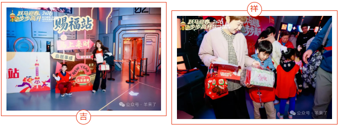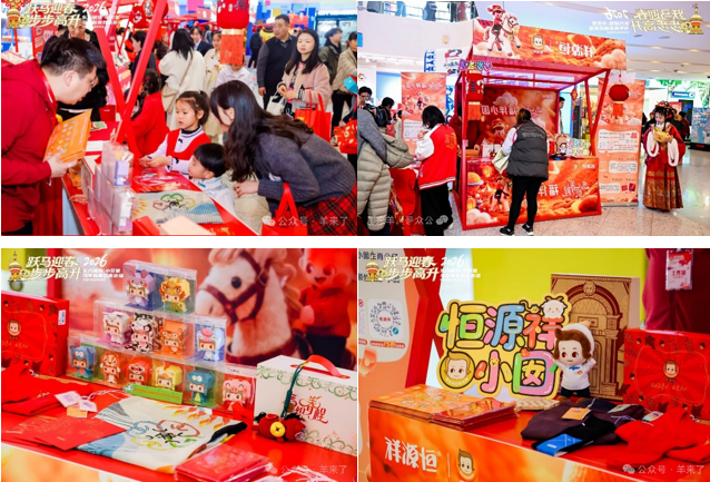 热闹的新春市集,恒源祥·小囡的“马织春程 福伴小囡”摊位温馨且富有节庆氛围。小囡鸿运套装、红灯笼、新年祝福牌、十二生肖折纸等装饰品随处可见,呈现出浓厚的春节氛围。小囡们不仅可以拿到生肖折纸、马年御守和新年红包等节日礼品,还能够参与多种互动活动,体验传统文化的魅力。