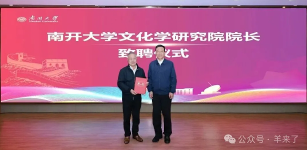 座谈会上,杨庆山向刘瑞旗致送聘书,聘任其为南开大学文化学研究院院长。