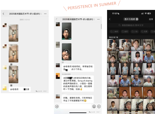 这是好小囡少儿合唱团第三次唱响维也纳金色大厅,每一次发声都承载着对音乐的热爱,每一次亮相都凝聚着无数日夜的打磨。整个七月,好小囡少儿合唱团都在为演出而努力,反复打磨每一个音符,老师则逐字逐句纠正发音,让成长的足迹在热爱的滋养下愈发坚实。出发前,上海连日台风,排练改为线上,微信群里一条条回课视频,定格着孩子们对着镜头认真开嗓的模样,每一帧画面都映照着对艺术最炽热的向往与不辍的坚持。