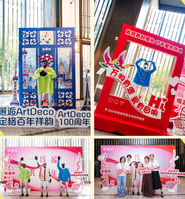 值得一提的是,晚宴前场外特设机器人活动打卡区,名为“恒恒”“源源”“祥祥”的三位机器人,身穿恒源祥特色服饰,成为嘉宾互动体验的热点。嘉宾们通过与机器人进行品牌知识问答、创意合影等环节,在“你问我答”中深化对恒源祥历史与创新理念的理解,在“默契定格”中留下与品牌的温暖瞬间,并通过社交媒体分享的精彩时刻,生动传递了恒源祥科技化、年轻化的品牌活力。
